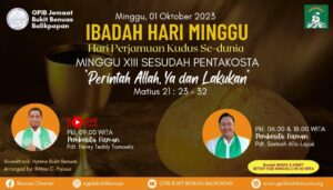 Ibadah Hari Minggu, 1 Oktober 2023 | PF: Pdt. Sarinah Allo Layuk (06.00 & 18.00) & Pdt. Henry Teddy Tamaela (09.00)