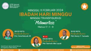 Ibadah Hari Minggu, 11 Februari 2024| PF: Pnt. Vera Katuuk-W (06.00), Pdt. Sarinah Allo Layuk (09.00) & Pdt. Henry T. Tamaela (18.00)