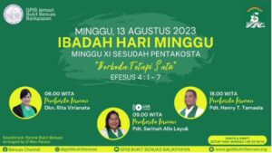 Ibadah Hari Minggu, 13 Agustus 2023| PF: Dkn. Rita Virianata (06.00), Pdt. Sarinah Allo Layuk (06.00) & Pdt. Henry Teddy Tamaela (18.00)