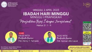 Ibadah Hari Minggu, 02 April 2023 | PF: Pdt. Henry Teddy Tamaela (09.00) & Pdt. Sarinah Allo Layuk (18.00)