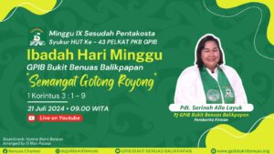 Ibadah Hari Minggu, 21 Juli 2024| PF: Pnt. Donald Mantiri (06.00), Pdt. Sarinah Allo Layuk & Pdt. Henry T. Tamaela (18.00)