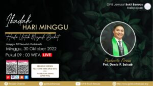 Ibadah Hari Minggu, 30 Oktober 2022 | PF: Pnt, Donie F. Saisab (09.00)