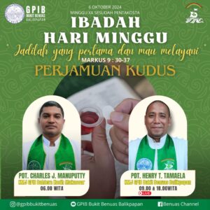 Ibadah Hari Minggu/Perjamuan Kudus, 6 Oktober 2024| PF: Pdt. Charles J. Manuputty (06.00), Pdt. Henry T. Tamaela (09.00 & 18.00)